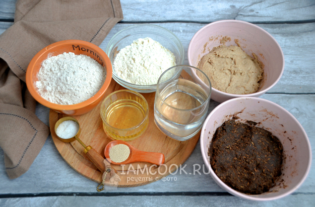 Подготовьте ингредиенты для выпечки Литовского хлеба. Заранее должны быть подготовлены заварка и опара. О том, как это сделать, рассказываю ниже.