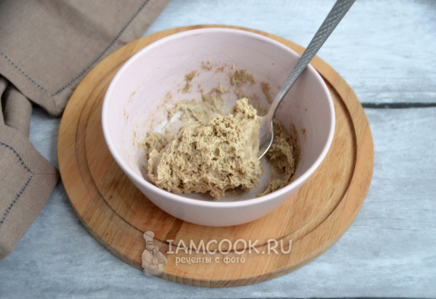 Смешайте все ингредиенты, получается очень плотная масса, это нормально.