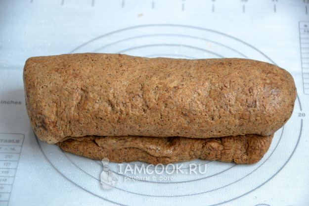 Защипните заготовку хлеба "по шву", подкатайте, чтобы выровнять поверхность.