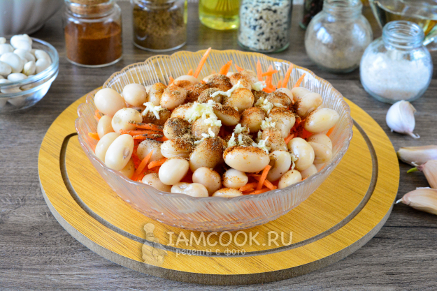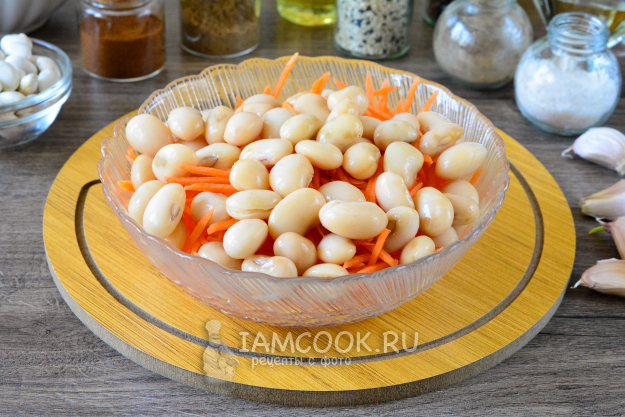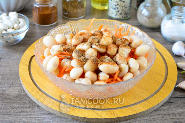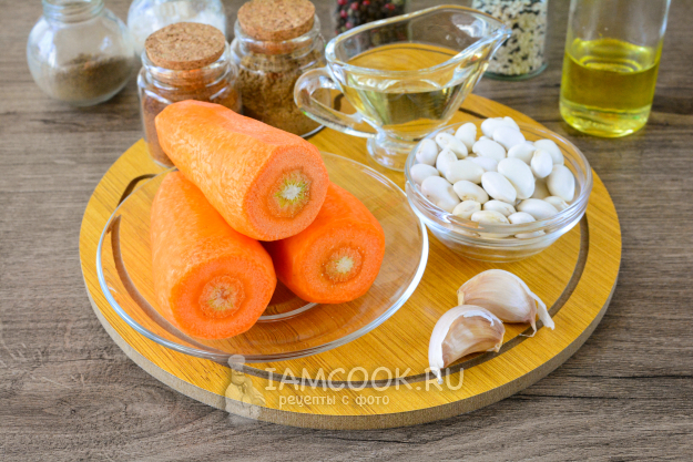 Соберите все ингредиенты для приготовления моркови по-корейски с фасолью.