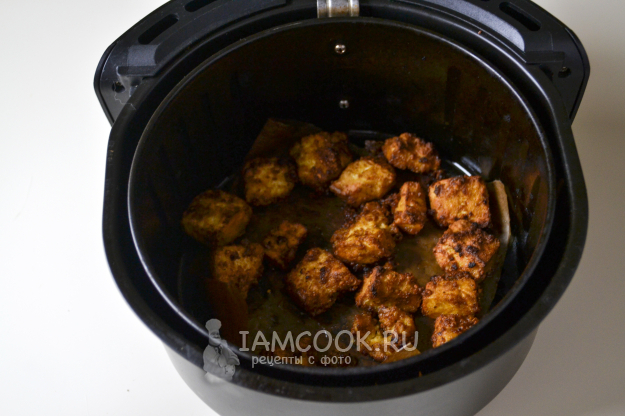 Через 8-10 минут встряхните чашу, переверните аккуратно кусочки, чтобы запеклись со всех сторон.