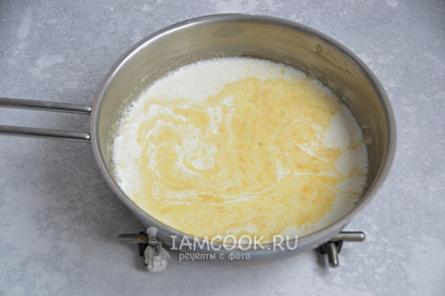 Влейте на сковороду сливки, продолжайте готовить при помешивании.