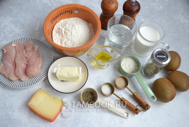 Соберите ингредиенты для приготовления пиццы с киви в соответствии со списком к рецепту.