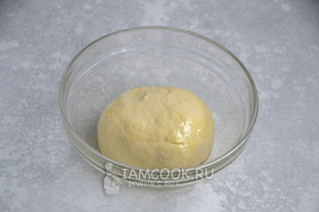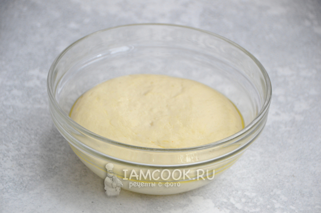 Подкатайте тесто в шар, смажьте оливковым маслом, накройте пленкой, поставьте в теплое место примерно на 30-45 минут.