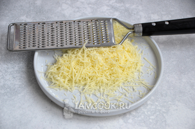 Пока подходит тесто, займитесь приготовлением начинки. Натрите на терке сыр.
