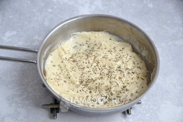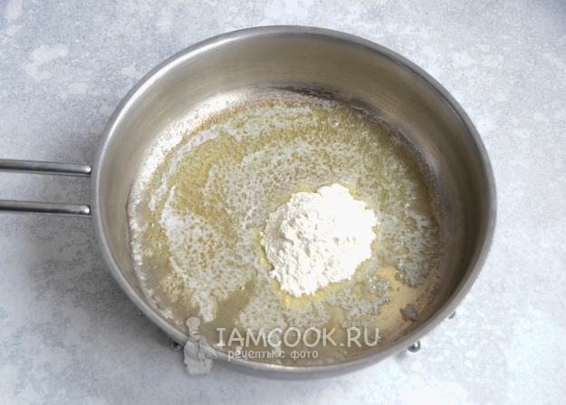 Для приготовления соуса растопите кусочек сливочного масла на сковороде, добавьте чайную ложку муки.