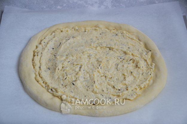 Выложите сырно-сливочный соус, разровняйте.