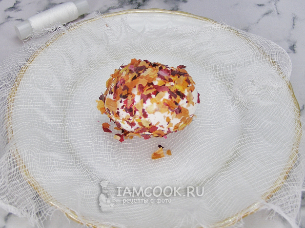 Собираем марлю и крепко завязываем ниткой. Таким же образом «пеленаем» все яйца.