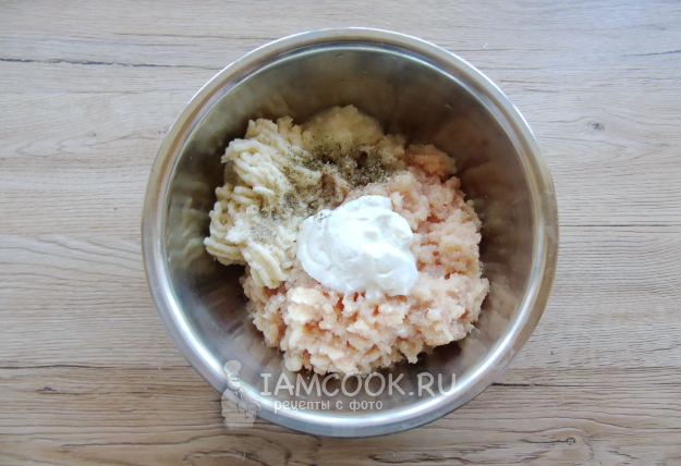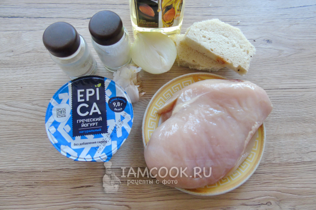 Соберите ингредиенты для приготовления куриных котлет с греческим йогуртом.