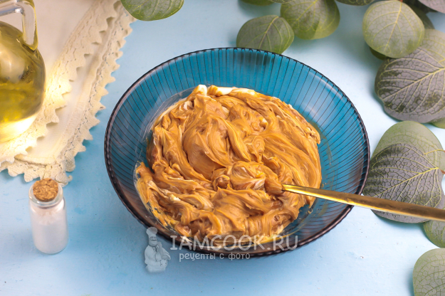 Смешайте в емкости сливочное масло, вареное сгущенное молоко, лимонный сок и ванильный сахар, получая красочную начинку.