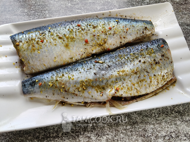 Полить маслом. Посолить, сдобрить специями. Если не любите рыбу со специями, берите только соль.