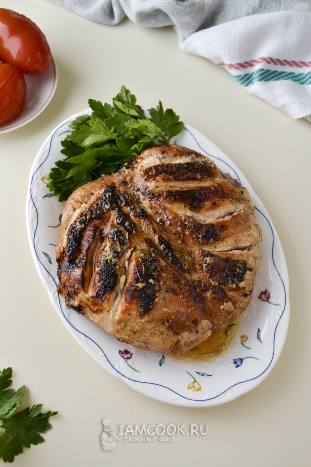 Аккуратно, чтобы не обжечься, переверните грудку на другую сторону.