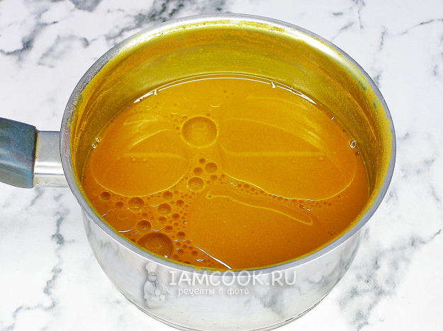 Куркуму заливаем горячей водой (не кипятком), перемешиваем и оставляем остывать. Температура должна быть примерно как комнатная или ниже.