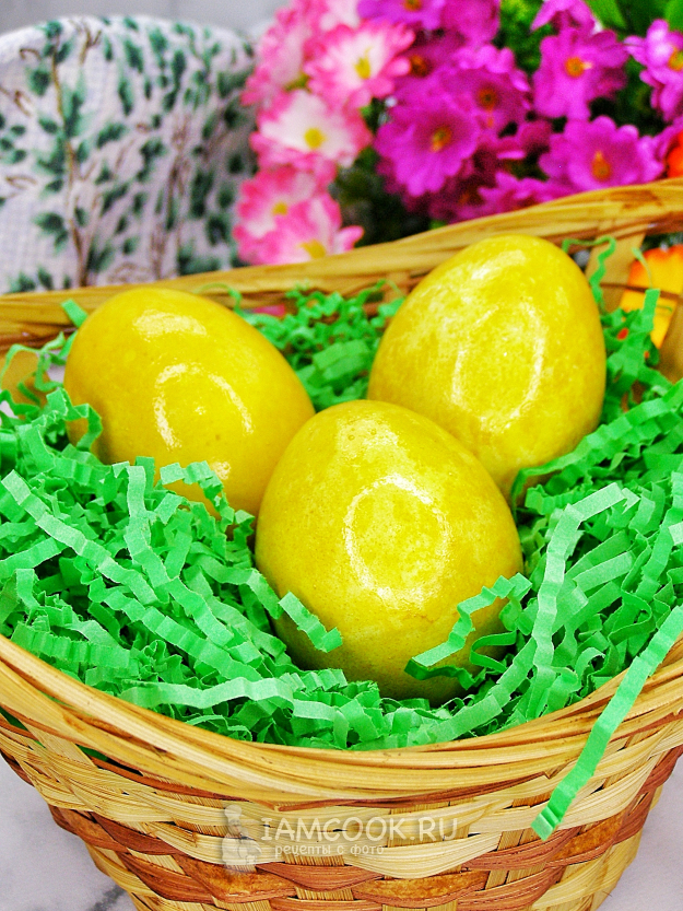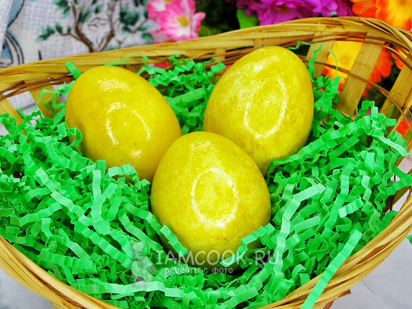 Крашеные яйца в куркуме и растительном масле, с лёгким мраморным эффектом готовы!