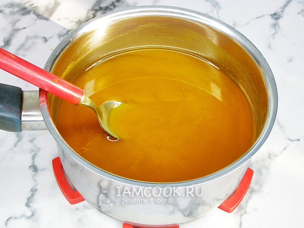 В остывший раствор вливаем уксус, растительное масло и аккуратно перемешиваем, чтобы на поверхности получилась масляная плёнка.