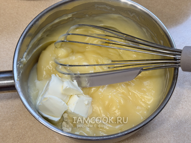 Переложить крем в миску и накрыть пленкой в контакт. Поставить крем в холодильник до полного остывания.
