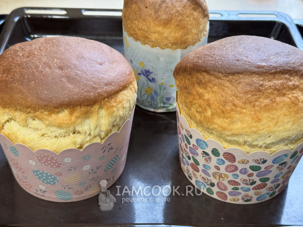 Выпекать куличи в разогретой духовке при 180 градусах примерно 35 минут. Готовность проверить деревянной шпажкой. Остудить куличи.
