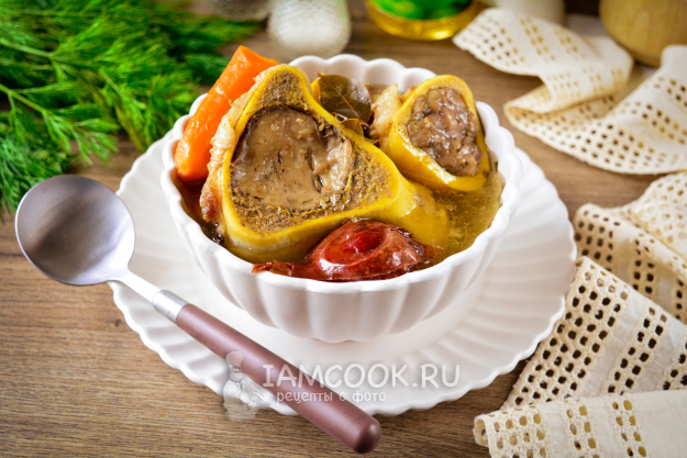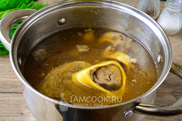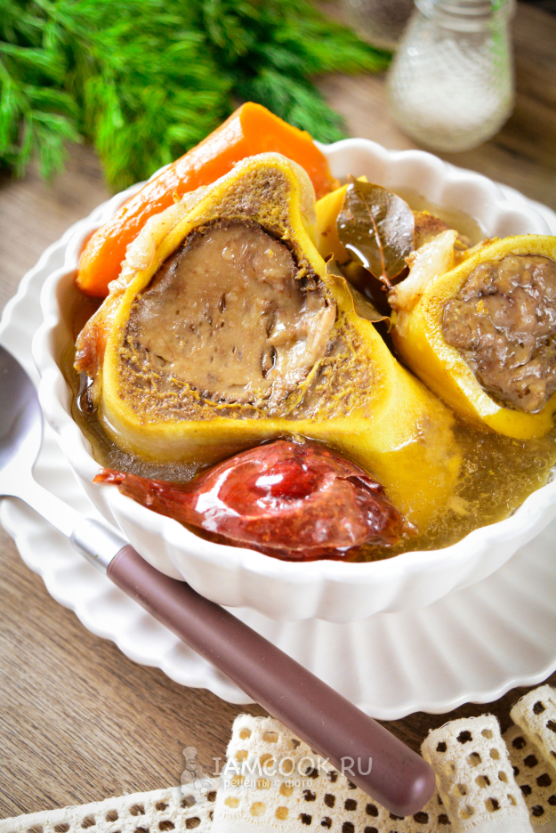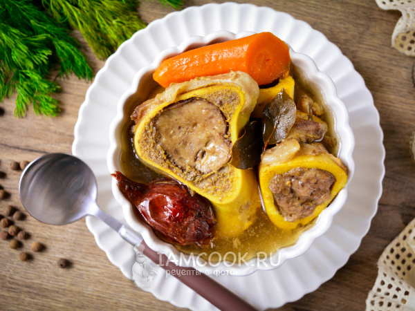 Горячий бульон из мозговых костей подавайте к столу.