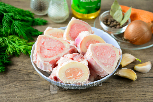 Соберите все ингредиенты для приготовления бульона из мозговых костей.