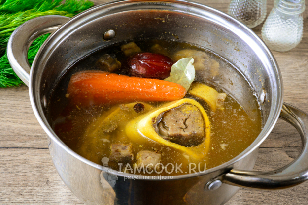 Бульон можно варить минимум 2 часа. Но все-таки из говяжьих мозговых костей рекомендуют варить бульон от 12 до 18 часов - таким образом образуется максимальное количество коллагена. Если у вас есть время, то так и делайте. Я варила бульон 10 часов.