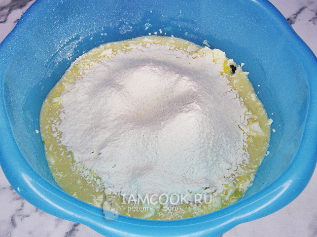 Просеиваем в миску муку. Не нужно всыпать всю муку сразу, её нужно подсыпать постепенно, частями.