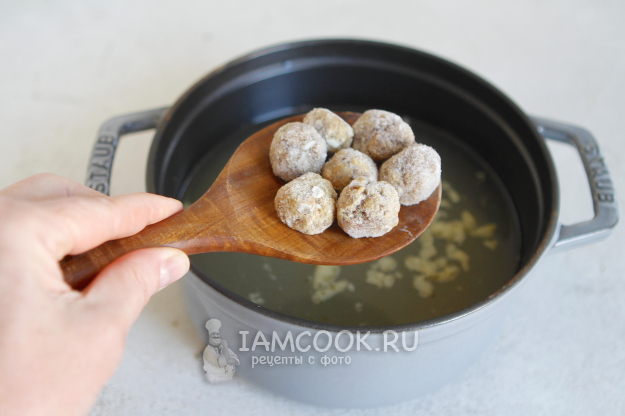 Смочите руки в прохладной воде и сформируйте фрикадельки. Отправьте их в морозильник на 5-6 минут.