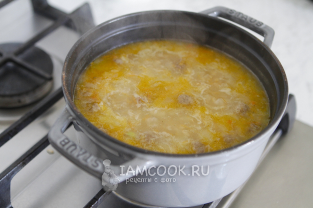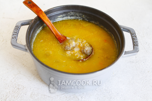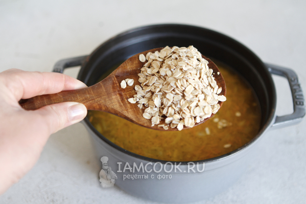 Убавьте огонь и продолжите варить суп с фрикадельками и овсянкой под крышкой еще примерно 15-20 минут.