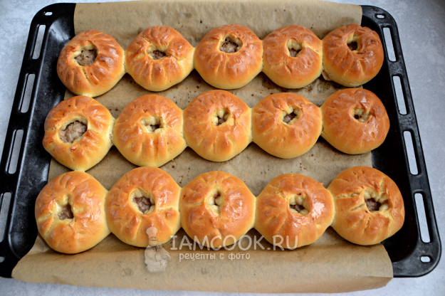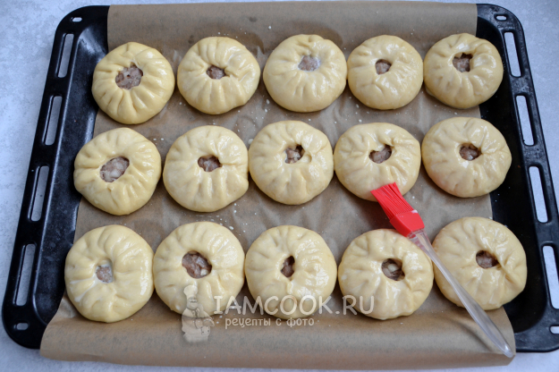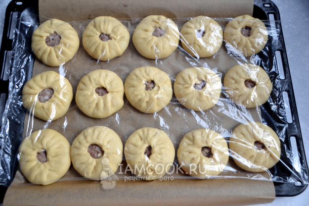 Выложите кайнары на противень, застеленный пергаментом. Накройте пленкой, дайте еще одну расстойку на 30 минут.