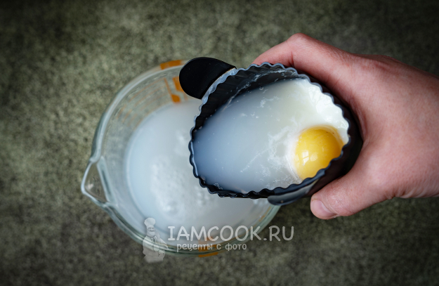 После окончания программы из каждой формочки с готовыми яйцами пашот слейте излишнюю жидкость.