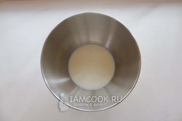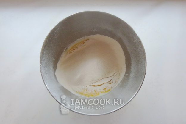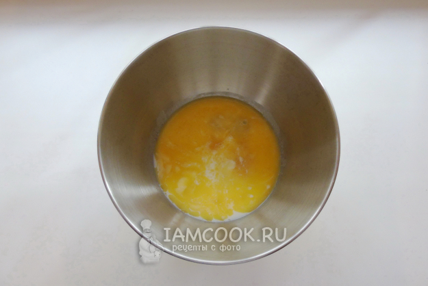 Сливочное масло растопите, немного охладите, тоже добавьте. Разбейте яйцо. Насыпьте сахар, ванильный сахар и соль. Перемешайте эти ингредиенты.