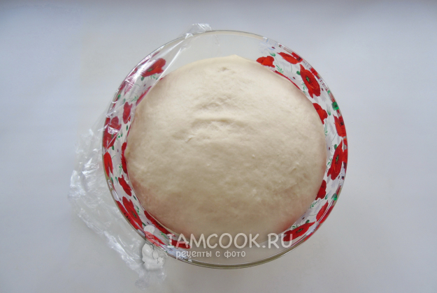 После тесто выложите в глубокую посуду, на дно которой налейте немного растительного масла. Накройте миску пленкой и поставьте в теплое место. Это может быть слегка прогретая микроволновка или духовка.