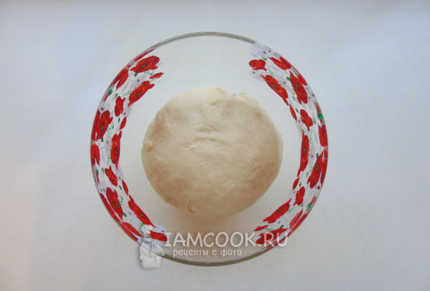 Замесите гладкое, эластичное, немного липнущее к рукам тесто. Я замешивала в миксере. Но с успехом это можно сделать и без него. Постепенно подсыпая муку, сначала перемешивайте тесто в миске ложкой. А когда оно начнет собираться в ком, переложите на стол, присыпанный мукой, и продолжайте замешивать до нужной кондиции.