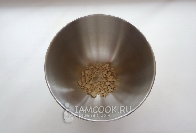 Свежие прессованные дрожжи накрошите в глубокую миску. У меня чаша от миксера.