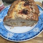 Переложить тесто в миску, добавить одно яблоко, очищенное и нарезанное кубиком. Добавить в тесто кунжут. В последний момент обнаружила что белого кунжута осталась всего чайная ложка, а нужно было 4, поэтому вместо белого пришлось добавить чёрный. Перемешать тесто.