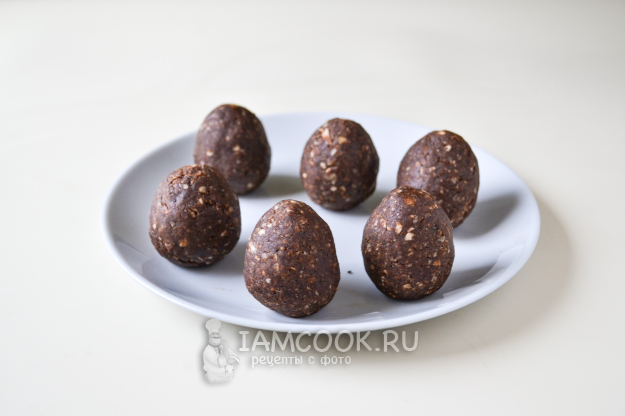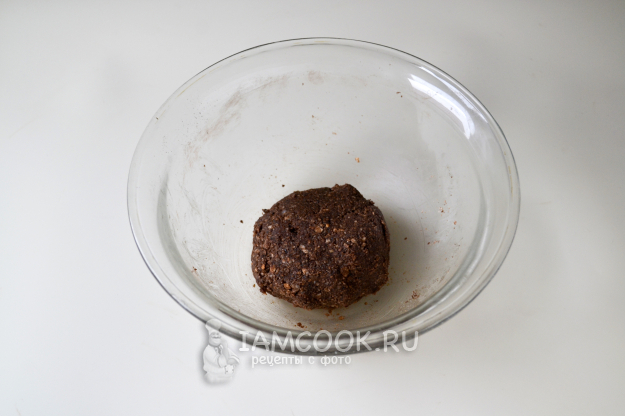 И постепенно добавляйте сгущенное молоко, замешивая тесто руками, чтобы получилась пластичная масса, из которой можно сформовать пирожное.