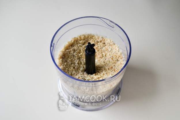 Измельчите при помощи насадки металлический нож до мелкой крошки.