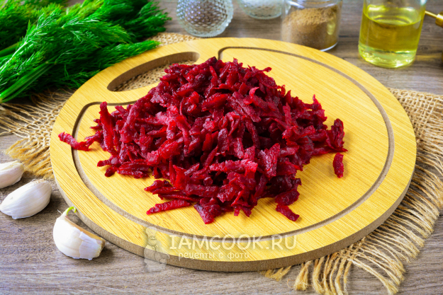 Почистите свеклу, сполосните и натрите на крупной терке.