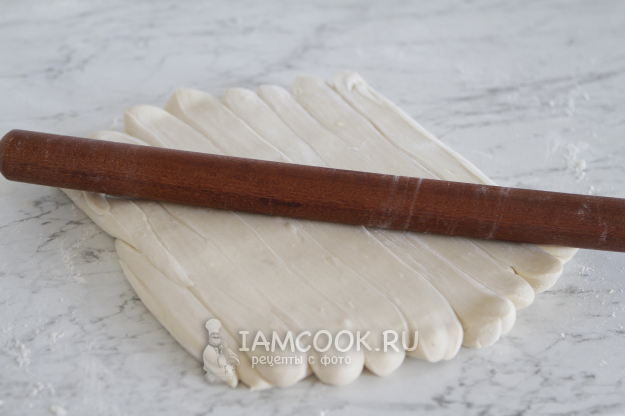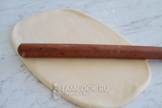 Охлажденное тесто в очередной раз раскатайте в прямоугольник.