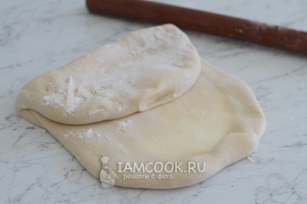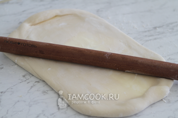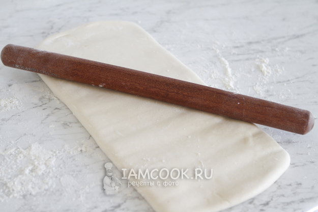 Разверните тесто книжкой к себе лицом и снова раскатайте его в прямоугольник.