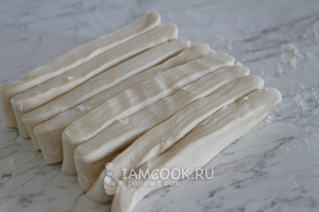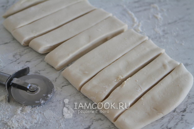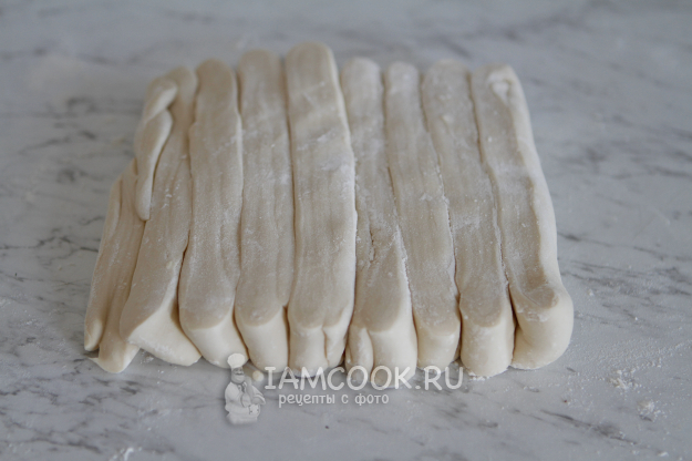 Нарежьте его на 8-10 полосок одинаковой ширины.