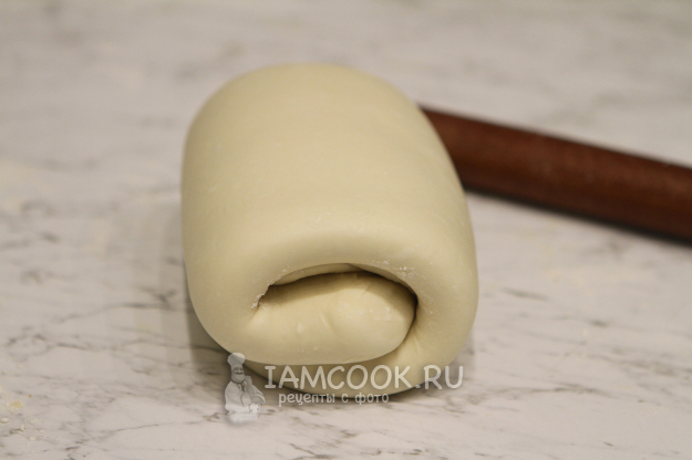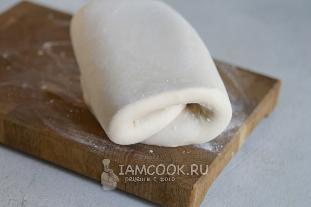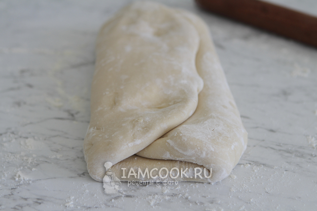 Сложите верхний край к центру, затем нижний. Уберите тесто в холодильник минимум на час.