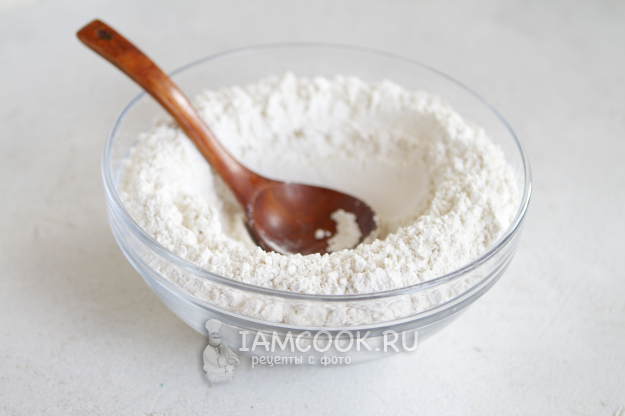 Просейте 500 г муки. Добавьте в нее сахар и перемешайте сухие ингредиенты.