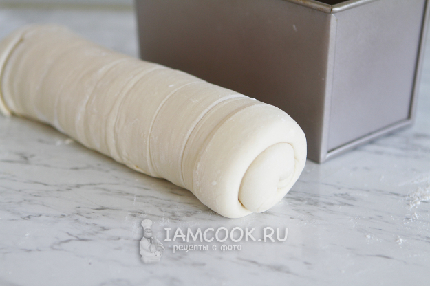 Рабочую поверхность подпылите мукой и выложите тесто.