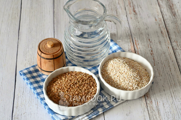 Вот такой набор продуктов потребуется для варки гречнево-ячневой каши.