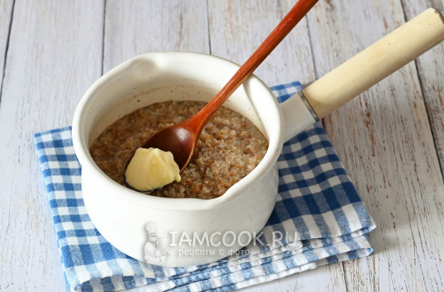 За это время каша впитает всю воду и полностью приготовится. Останется добавить в неё кусочек сливочного масла (по желанию) и перемешать.