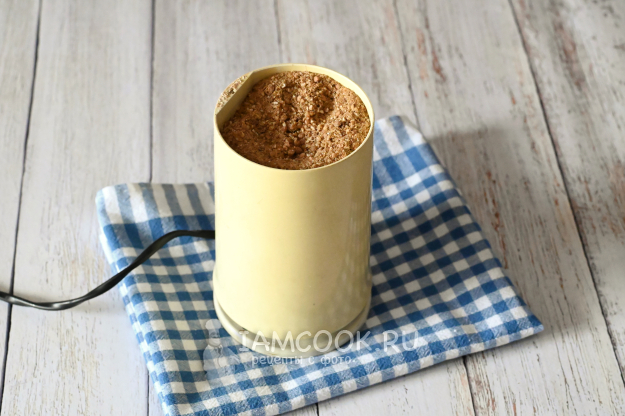 Есть в продаже готовая гречневая сечка, но мне она в последнее время стала редко встречаться. Поэтому я приготовлю её сама из гречки-ядрицы. Для этого в кофемолку всыпьте гречку-ядрицу и смалывайте в пульсовом режиме примерно 5-6 секунд.