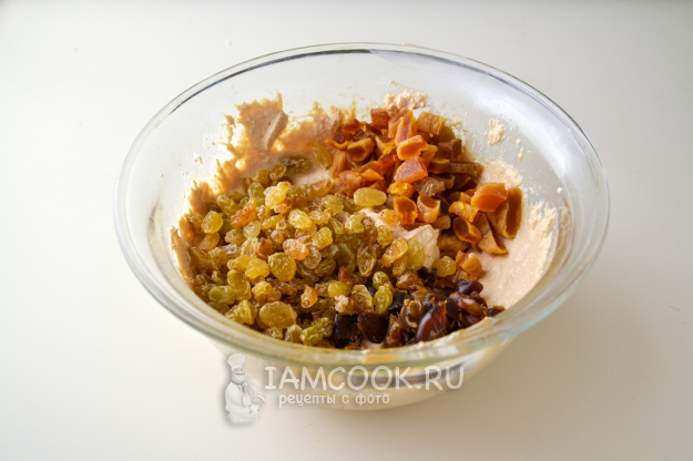 Сухофрукты тщательно промойте. Если они очень сухие, то залейте прохладной водой на 10-15 минут, чтобы стали мягче.