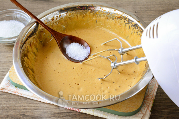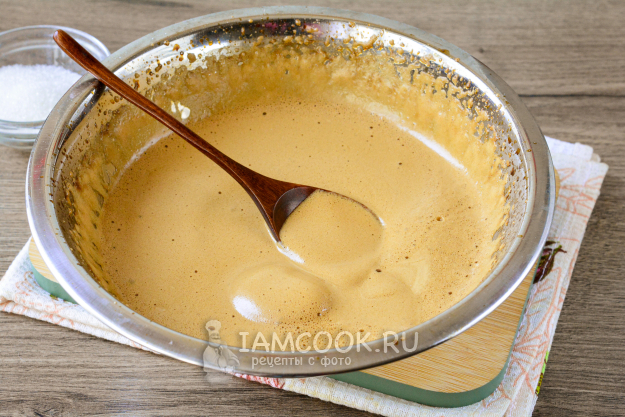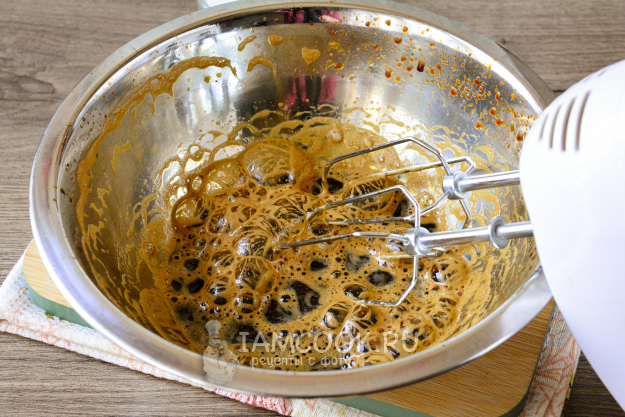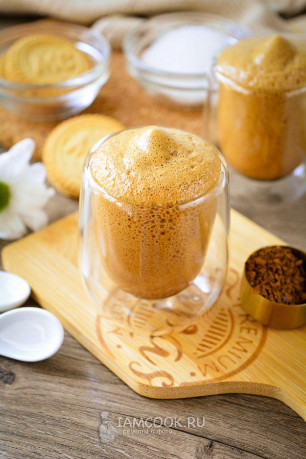 Начните взбивать кофе миксером на максимальных оборотах. Взбивайте 2-3 минуты до устойчивой пены.