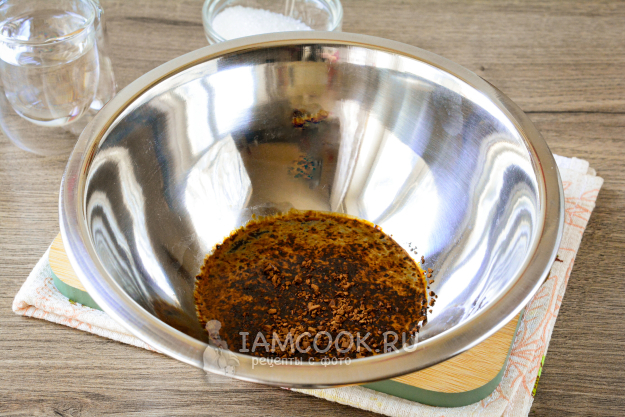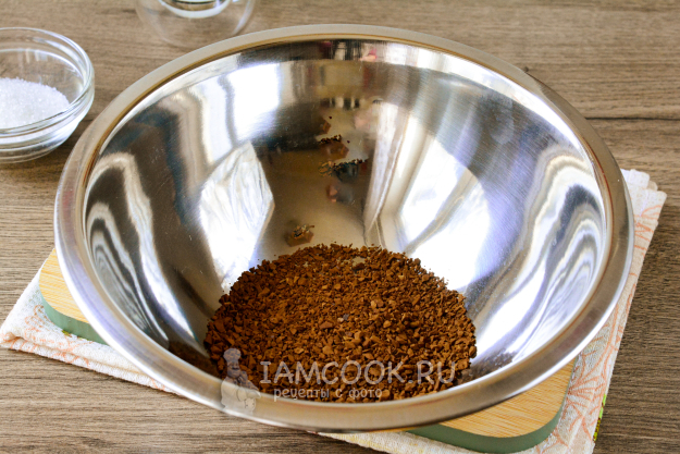 Всыпьте порцию растворимого кофе в глубокую миску.