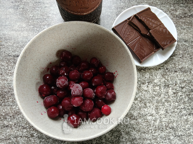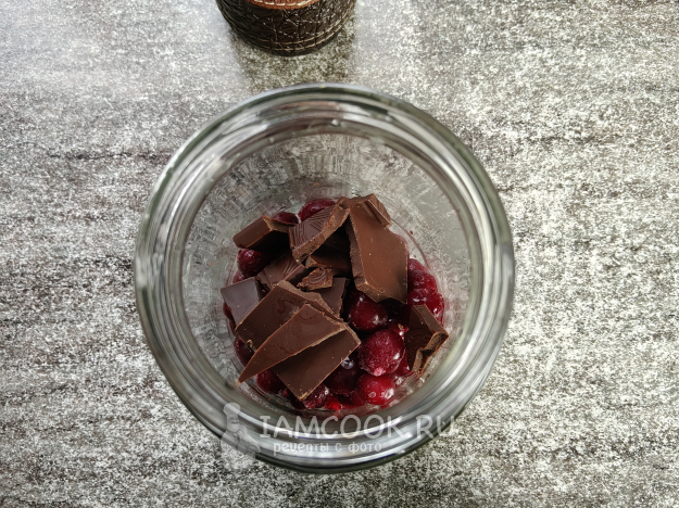 Все просто: чистую вишню загрузить в банку, туда же наломать шоколад.